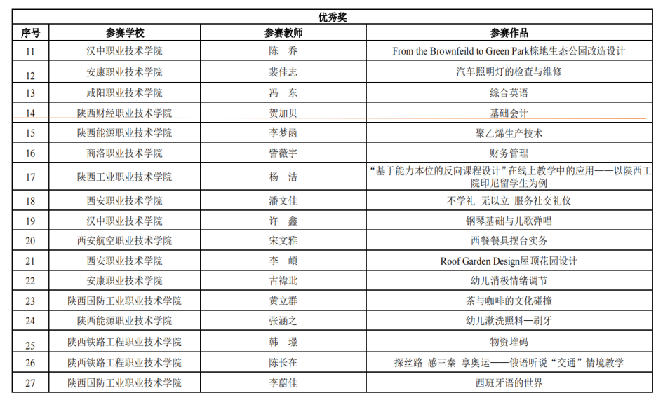 本次说课比赛共有包括我校在内全省14所高职院校,仅27名教师入围决赛。比赛通过线上线下相结合的方式进行,并诚邀西安交通大学、西安外国语大学等省内多所著名高校的英语、法语等5个语种10名专家教授担任评委,主要通过五个方面对参赛教师进行评分,包括教学理念、教学内容、教学创新、教学手段和教学效果。最终共评出一等奖2名、二等奖3名、三等奖5名、优秀奖17名。