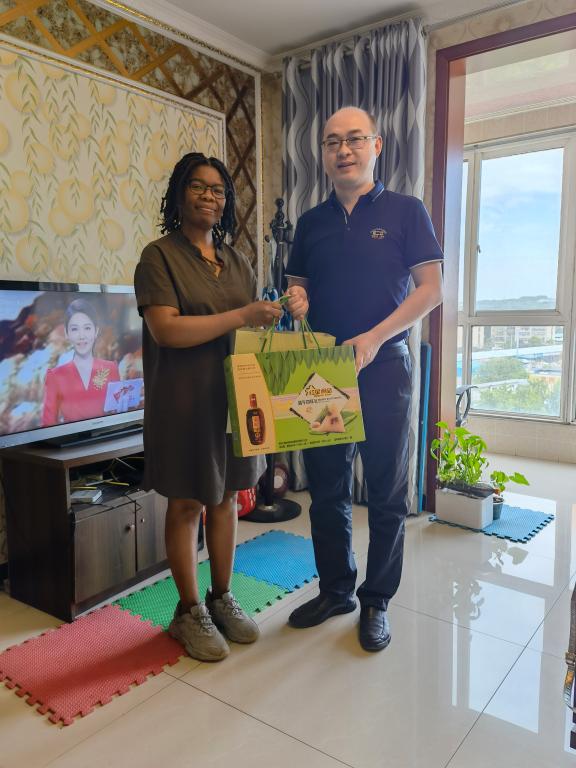 在端午节即将来临之际,受学院党政领导的委托,近日,我校国家交流与合作中心负责人杨华代表学院工会对外教进行端午节的慰问,为外教送上最温暖的节日祝福。