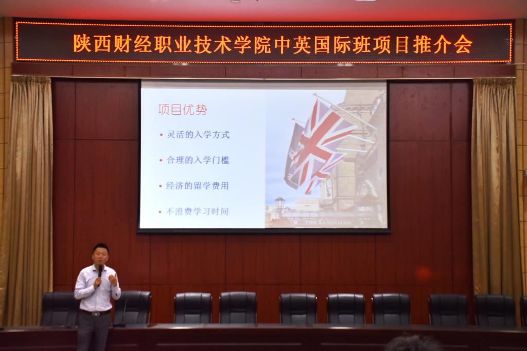 袁旭从密德萨斯大学的办学历史、专业特色、学制、招生专业、合作模式等方面进行了介绍。密德萨斯大学始建于1973年,是英国第六大国立大学,也是伦敦最大的综合性大学之一,在计算机科学、商科等学科中名列前茅。我院已与英国密德萨斯大学签订学分互认合作协议,两校合作主要关注计算机大类专业,采用2+1+1合作模式,即学生大一入学后建立中英双学籍,同时嵌入雅思和部分专业课程,学满两年,考核合格,申请英国留学1年获得本科学位,再续1年获得硕士学位。学生通过2+2中英班的学习,毕业时可获得陕西财经职业技术学院专科学历和英国密德萨斯大学本科及研究生学位证。推介会最后,李红对此次活动进行总结并给予很高的评价,她鼓励学生们勇敢地追求自己的理想,高瞻远瞩,奋发向上。