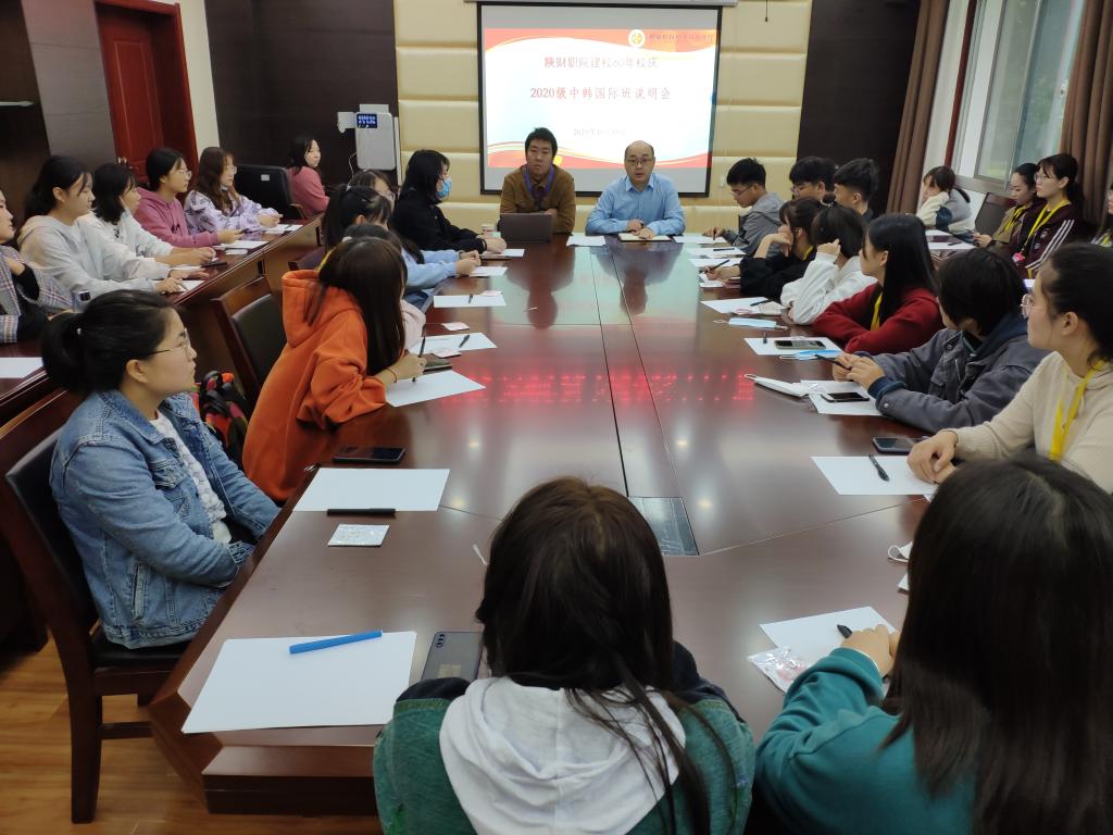2020年10月10日下午,我院国际交流与合作中心在实训楼107会议室举行中韩3+1专本连读国际班说明会。我院2020级空乘和工艺美术品设计2个专业40余名学生参加此次会议。说明会由国际交流与合作中心负责人杨华老师进行主持,西原大学驻陕代表杨超老师主讲。同学们首先观看了我院国际交流一年来的成果视频和韩国西原大学校园远传视频;紧接着,杨超老师向同学们详细介绍中韩3+1专本连读国际班的项目优势、专班特色、课程设置、培养方案、填报要求、录取流程等。