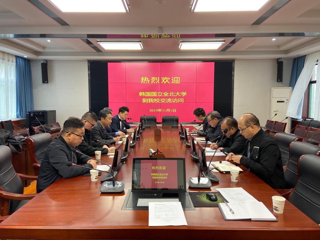 2019年11月1日上午,韩国国立全北大学国际协力副校长李冬宪、国际协力处处长沈在祐、国际协力处招生主任崔时荣等一行五人来我院访问交流,洽谈两校合作交流项目,就联合办学进行深入讨论并签署合作协议。学院院长程书强、工会主席王爱军、招办副主任王刚、国际交流与合作中心负责人杨华等出席了此次座谈会。