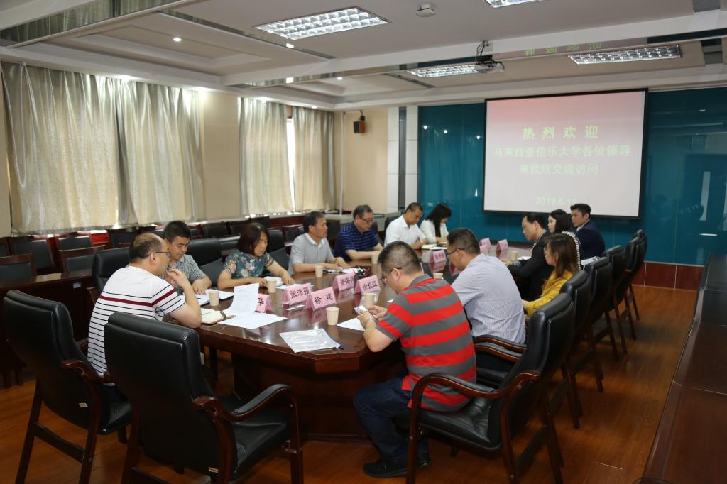 为了贯彻落实国务院办公厅《关于深化产教融合的若干意见》,推动高职教育结构性改革,加快我院现代化职业教育建设,2019年6月11日上午,马来西亚伯乐大学丘邦亮校长一行6人来我院交流洽谈,学院院长程书强、副院长刘晓玉出席,教务处处长马西牛、经济与金融学院院长景海萍、商学院院长董媛、管理学院副院长张沛强以及国际交流与合作中心负责人杨华参加此次座谈座谈会。会议由刘晓玉主持。